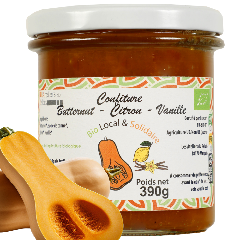390gr Élaborée artisanalement, cette recette marie subtilement la douceur du butternut, la fraîcheur du citron et l’arôme envoûtant de la vanille. Sans additifs ni conservateurs, elle garantit une expérience gustative authentique et naturelle. Idéale pour les amateurs de nouvelles saveurs, elle apporte une touche d’originalité à vos repas tout en respectant les ingrédients et le savoir-faire traditionnel. Ingrédients : Butternut*, citron*, vanille* * issus de l’agriculture biologique Préparé avec 60g de fruits pour 100g de produit fini. Teneur totale en sucres : 58% Après ouverture à conserver entre 0 et 4°C Présence possible d’allergènes Certifié par Ecocert FR-BIO-01 Agriculture UE/Non UE (sucre)